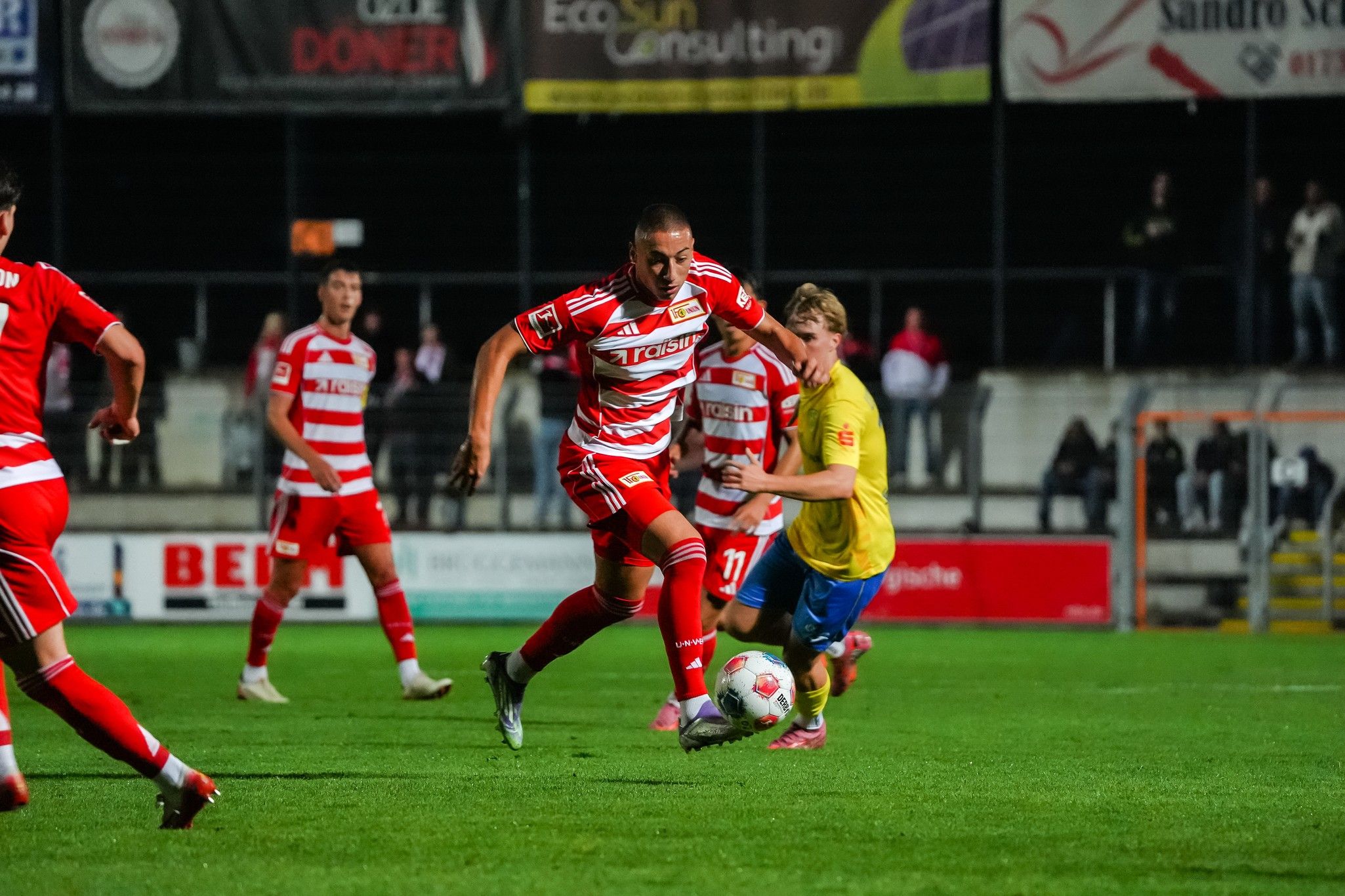 In der 59. Spielminute dann die bislang beste Möglichkeit für den Regionalligisten: Perfekt bedient von Luca Dreihardt marschierte Max Dreihardt in den Strafraum der Eisernen und versuchte, FCU-Schlussmann Matheo Raab zu umdribbeln. Doch es blieb beim Versuch. Raab blieb lange auf den Beinen und stoppte den Ball im letzten Moment mit dem Fuß, sodass er den Torabschluss verhindern konnte.