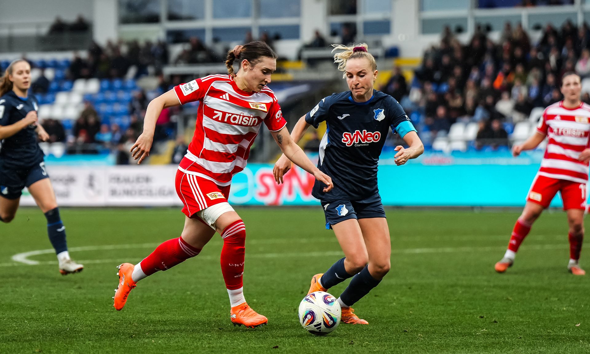 Auf der Gegenseite lenkte Nadine Böhi einen Kopfball von Valesca Ampoorter stark über die Latte (38.). Zwei Minuten später war die Schweizer Schlussfrau jedoch erneut geschlagen: Nach einem Unioner Ballverlust im Spielaufbau zog Melissa Kössler aus 25 Metern ab und beförderte die Kugel maßgenau unter die Latte (40.). Während sich die TSG vor dem Tor äußerst effizient zeigte, war Union weiter im Pech: Ein Schlenzer von Judith Steinert aus 17 Metern flog ans obere Aluminium (43.). In der Nachspielzeit hatte Dina Orschmann noch eine weitere vielversprechende Gelegenheit, schoss das Spielgerät nach Vorarbeit von Campbell jedoch knapp über das Gehäuse (45+1.).
