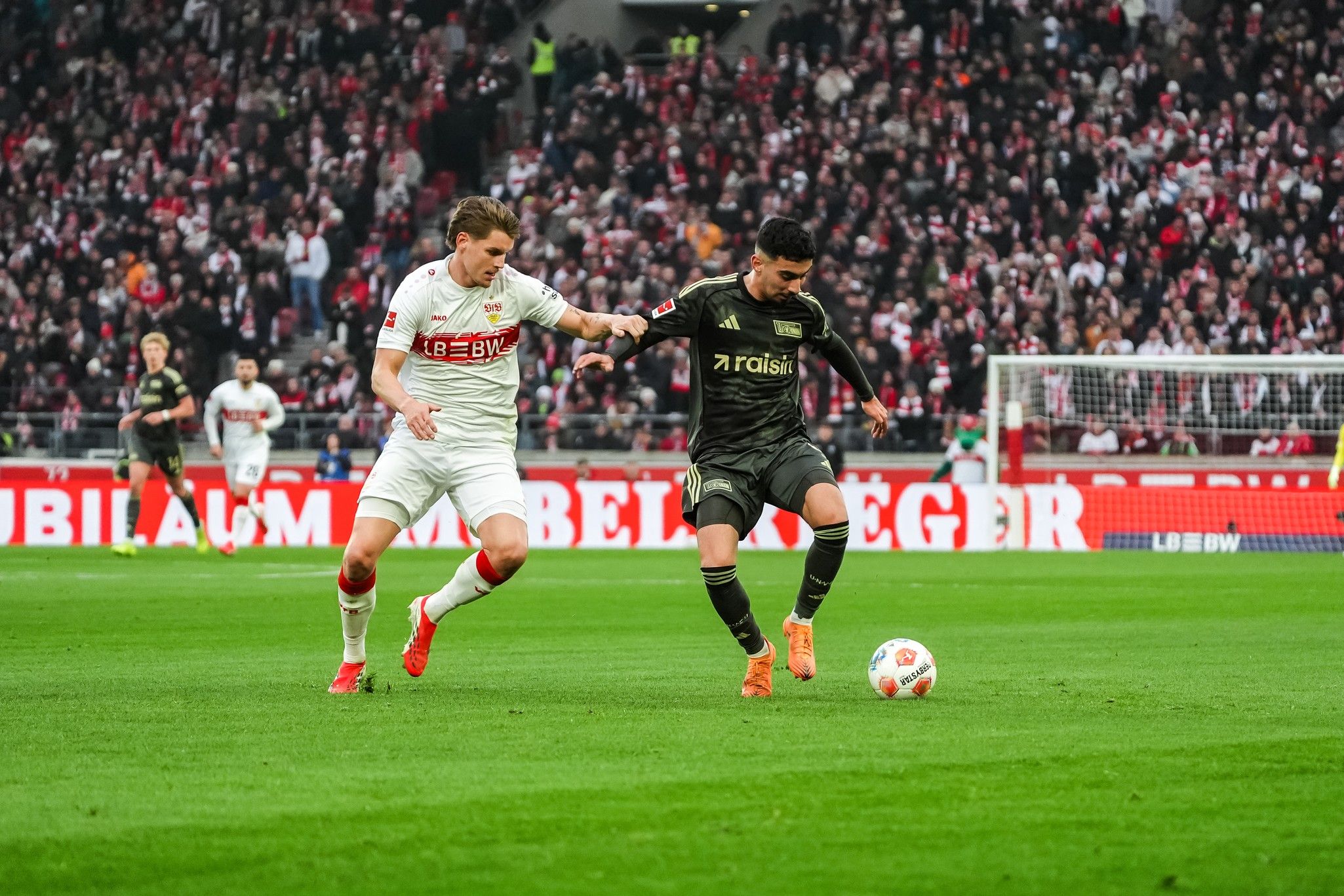 Ohne groß Anlauf zu nehmen, startete die Partie nach wenigen Minuten mit einem ersten Ausrufezeichen der Gastgeber: Chris Führich trieb den Ball durch die Berliner Spielhälfte, setzte den rechts aufgerückten Josha Vagnoman in Szene, durfte dann aber nicht jubeln. Frederik Rönnow im Tor der Eisernen verkürzte geschickt den Winkel und blockte den Versuch des Außenverteidigers stark ab (7.). Auf der anderen Seite hatte Andrej Ilić sieben Minuten später die große Möglichkeit zur Führung auf dem Fuß, frei durch vor dem VfB-Tor touchierte sein Linksschuss von der linken Seite aber nur den rechten Außenpfosten.