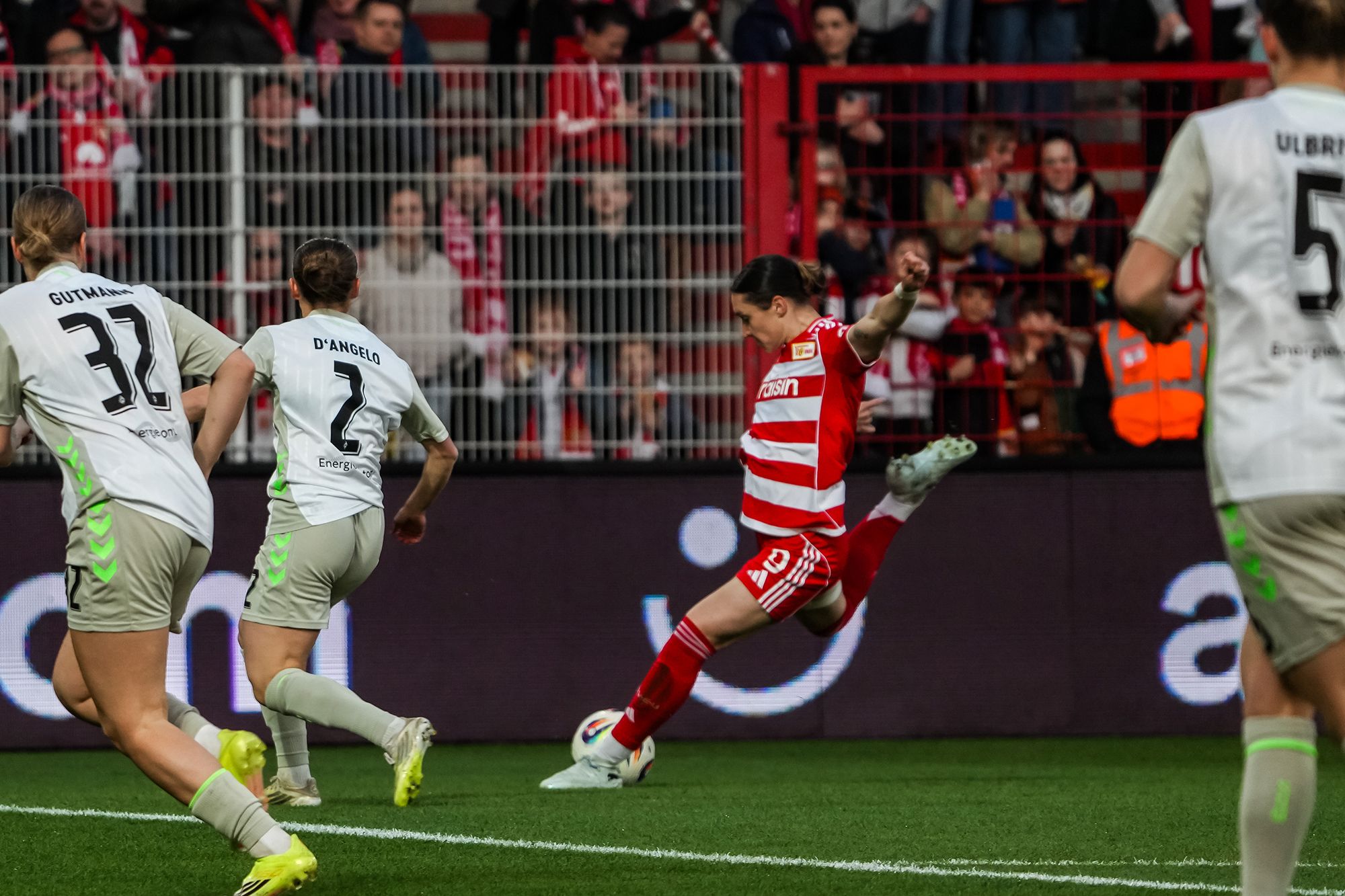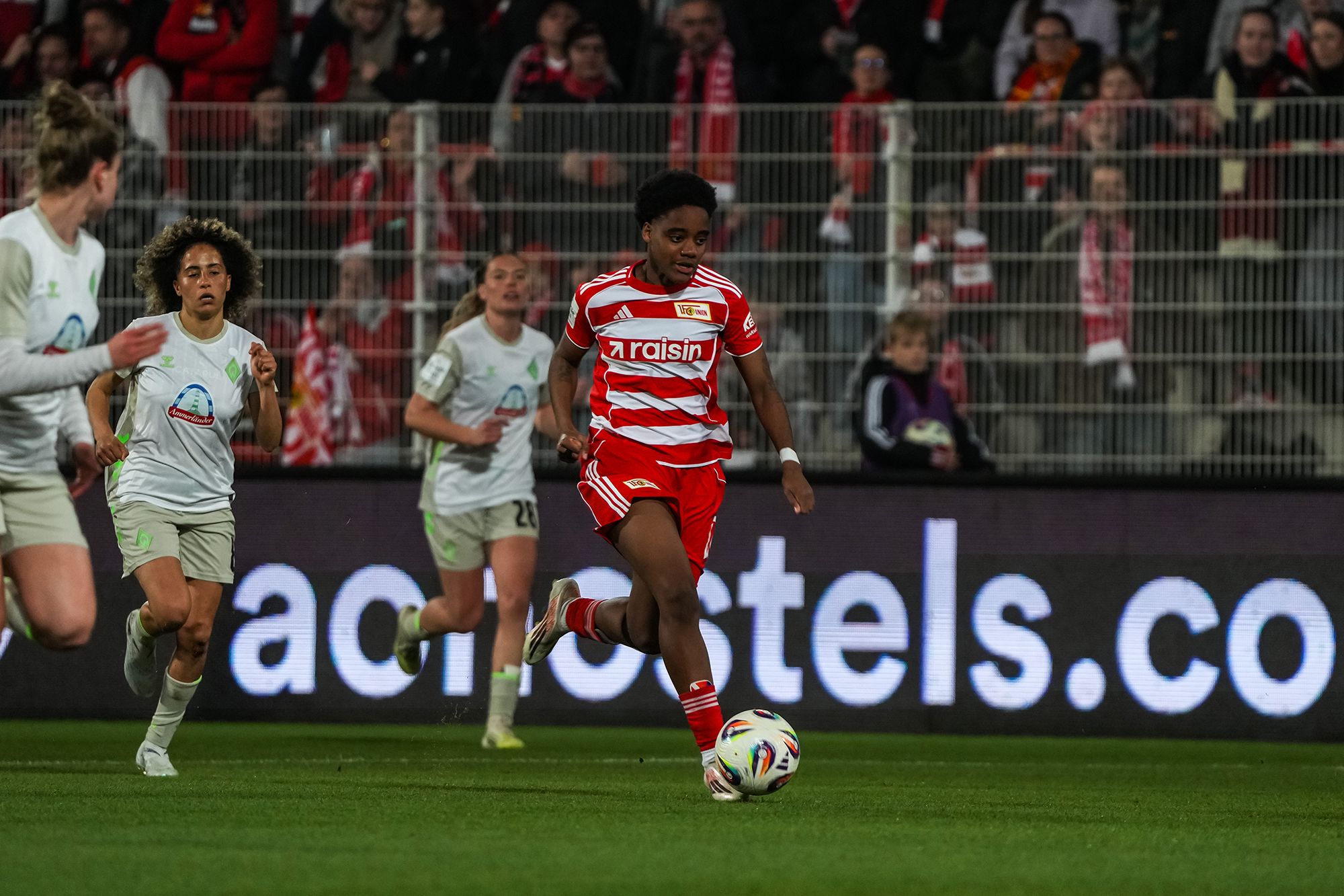 Die Profimannschaft der Frauen des 1. FC Union Berlin setzt sich zum Abschluss des 21. Spieltags der Google Pixel Frauen-Bundesliga deutlich mit 4:1 gegen den SV Werder Bremen durch. Die Eisernen dominieren im Stadion An der Alten Försterei das Geschehen und gehen nach 18 Minuten durch einen Treffer von Lia Kamber in Führung. In der 29. Spielminute hält Nadine Böhi mit einem parierten Handelfmeter die Führung fest, ehe ein Eigentor (40.) und ein Treffer von Lisa Heiseler (45+1.) für den 3:0-Halbzeitstand sorgen. Im zweiten Durchgang erhöht Hannah Eurlings in der 78. Minute auf 4:0, ehe Werder in den Schlussminuten noch Ergebniskosmetik betreibt (85.).