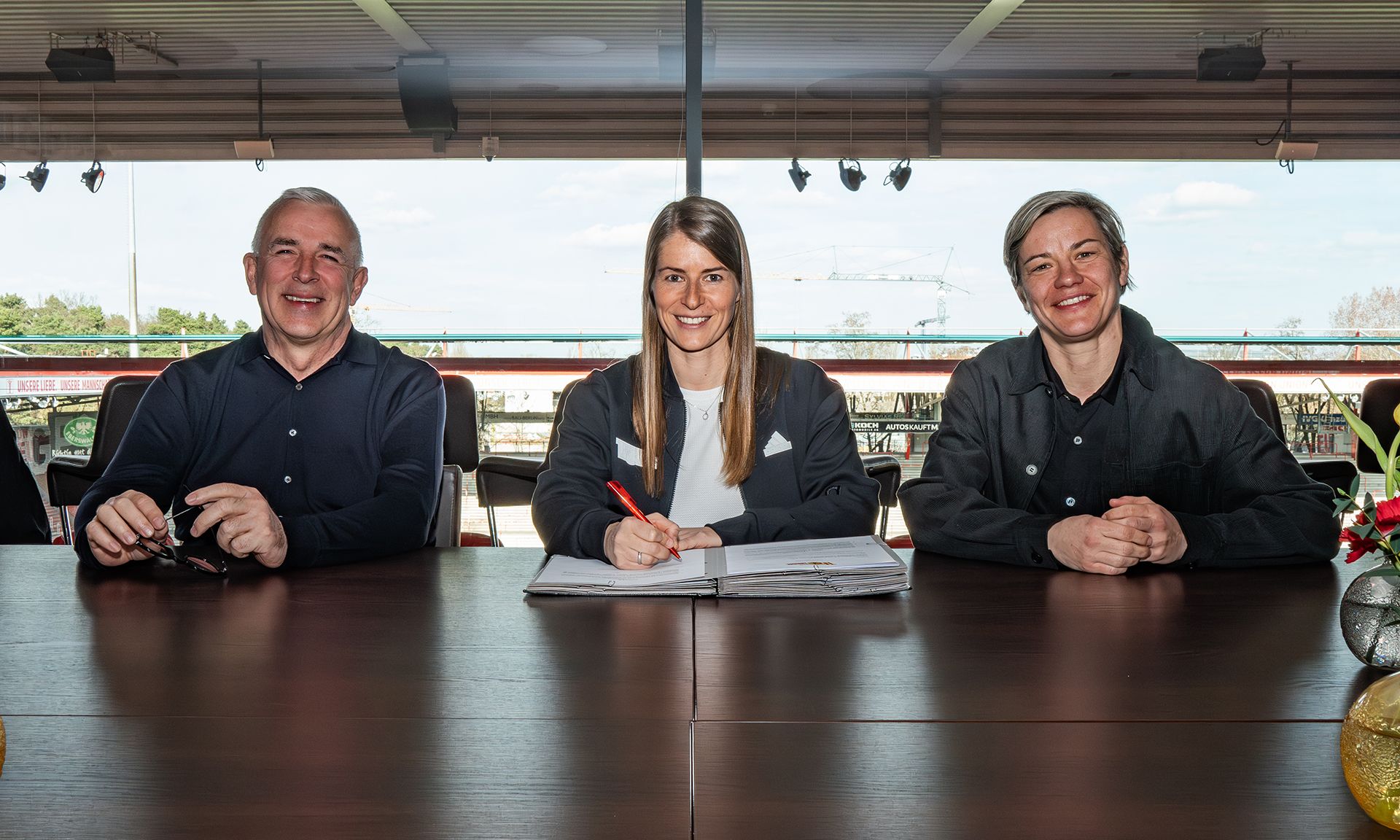 „Ich bin sehr dankbar für das Vertrauen des Vereins und die Möglichkeit, als Cheftrainerin der Frauen-Profimannschaft den nächsten Schritt zu gehen. Die Entwicklung der Mannschaft im ersten Bundesliga-Jahr habe ich aufmerksam verfolgt. Das Team, in dem ich einige Spielerinnen aus der vergangenen Saison bereits kenne, hat in den letzten Jahren Großartiges geleistet. Darauf werden wir aufbauen und die Mannschaft weiter voranbringen. Die ambitionierten Ziele des Vereins haben mich dabei ebenso überzeugt wie die klare gemeinsame Ausrichtung. So groß die Vorfreude auch ist, mein aktueller Fokus liegt komplett auf dem Saisonendspurt mit der U19, in dem wir gemeinsam das Maximale in den kommenden Spielen herausholen wollen“, so Marie-Louise Eta bei Vertragsunterzeichnung.