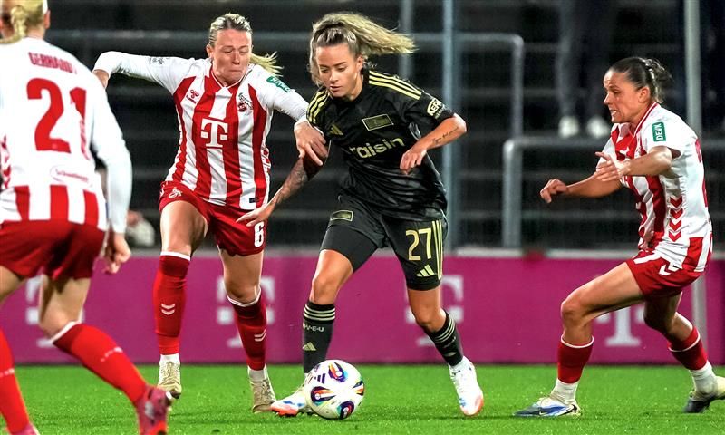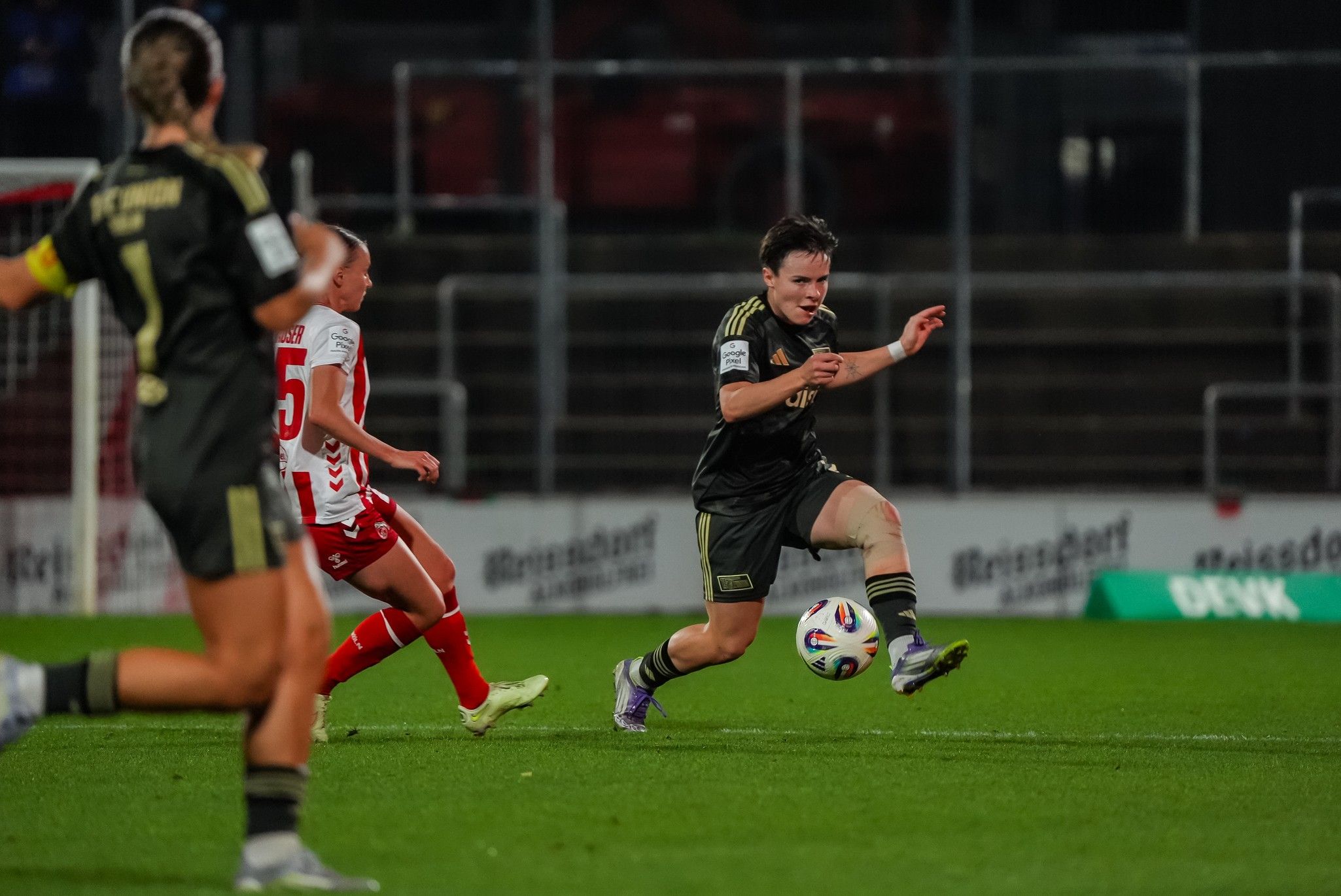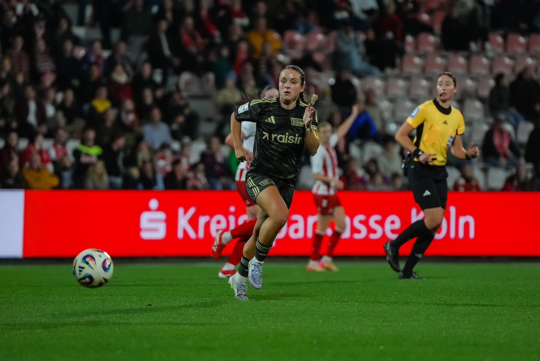Köln would equalise before the half hour was up. A free kick was lofted in from the left across the box from where Marina Hegering headed it precisely back across goal. The routine looked well-honed, and it worked like a dream. Laura Vogt broke free and arrived at the exact moment to stab it over the line. Cara Bösl was already long taken out of play by the cross.