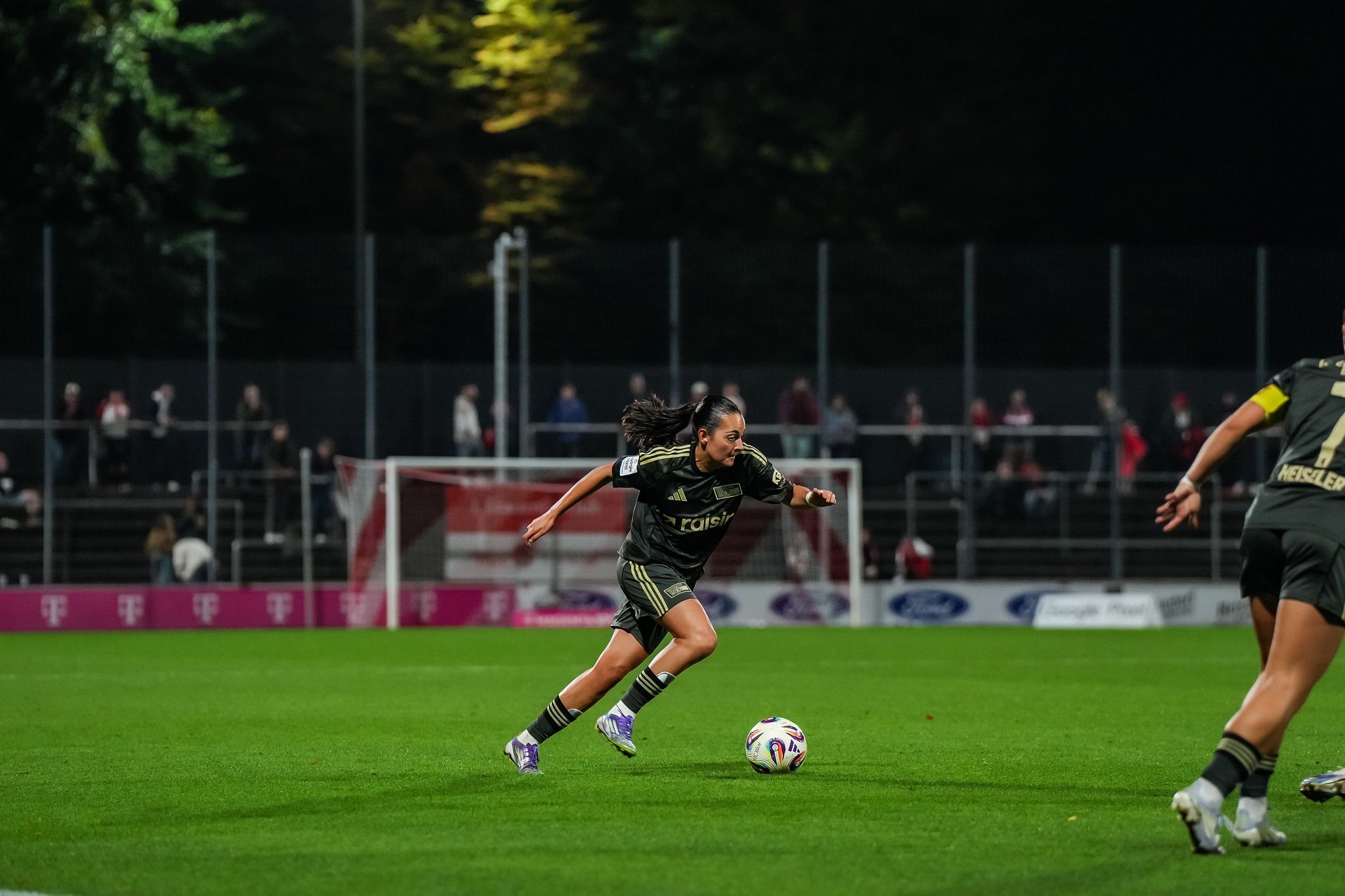 She waited, letting the ball bounce quickly, before hitting it down into the ground with her studs past debutant, Irina Fuchs, in the Köln goal. It was a superb, instinctive, striker’s finish.
