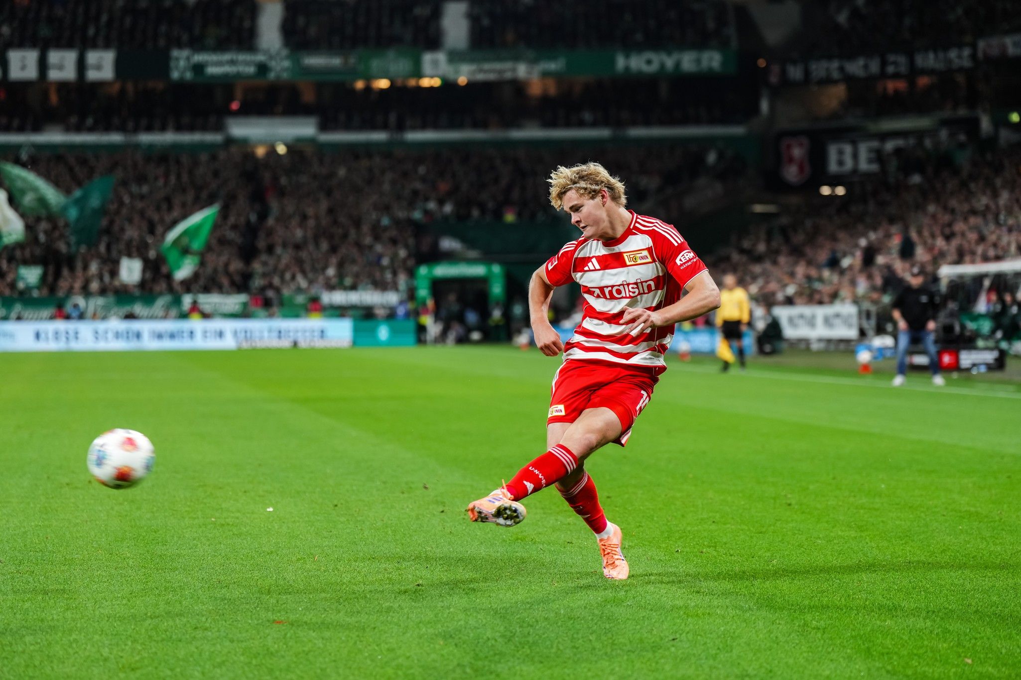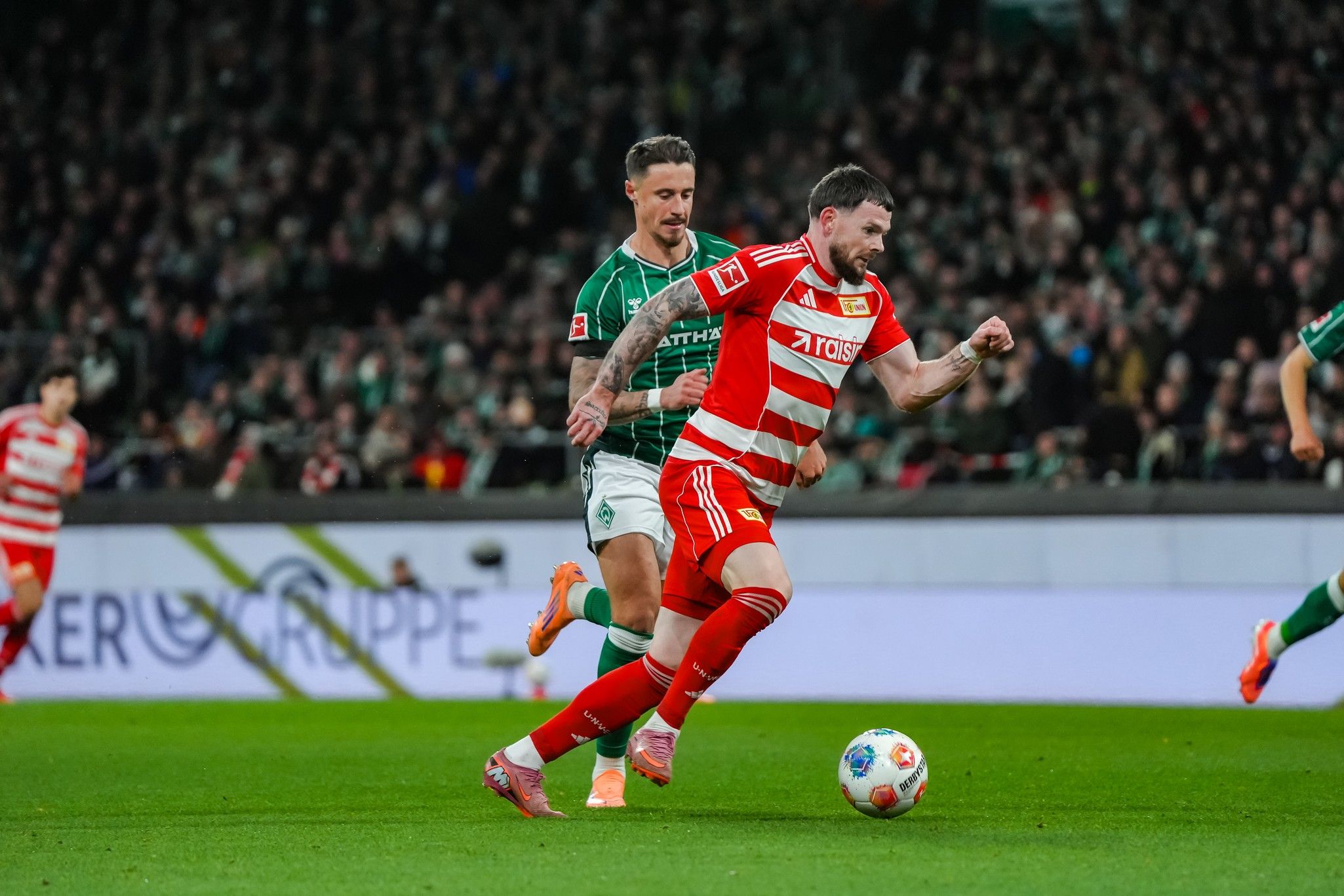 Bremen came closer still when Yukinari Sugawara shot first time, only for Diogo Leite to somehow flick it up and over the bar with his head as the ball flew at terrifying pace. The excellent Leite made his next vital challenge on the Japanese international soon enough again, this time as they met out on Union’s left-hand-side, Leite blocking his attempted cross this time with a swiftly extended right boot.