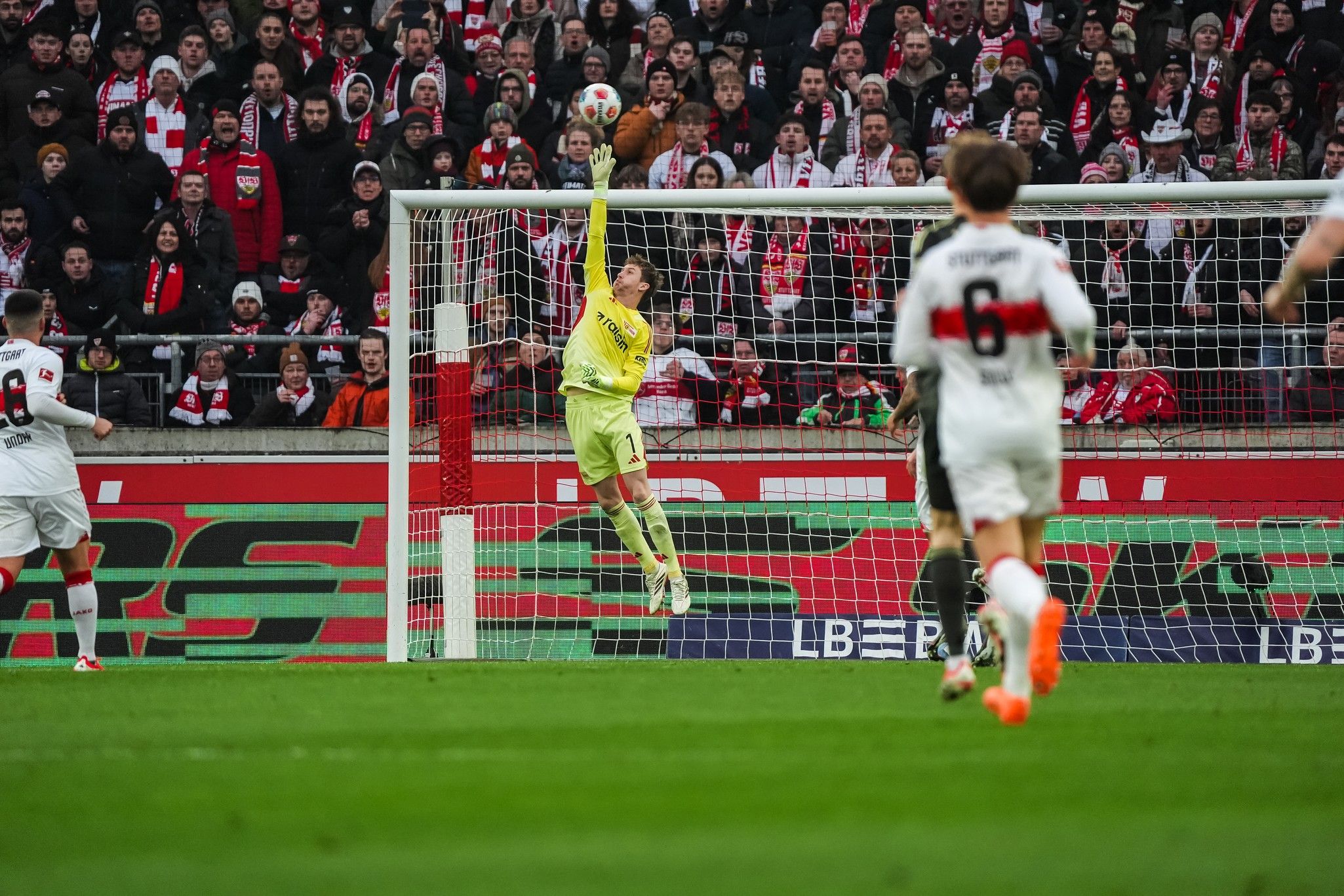 Hendriks was never far from the action as Union increased their pressure, and their presence inside the Stuttgart half, and he again did well as Burcu took Khedira’s short pass, looking to spin past him on the right-hand edge of the six-yard box in a single flourish. Vagnoman was booked with five minutes of the half to play, resorting to shoving Burcu from behind; Haberer hit a gorgeous first time half-volleyed cross from Diogo Leite’s long, arcing ball, only winning a corner when, were it not for a last decisive touch at the near post, it could have found Khedira, ready to pounce.