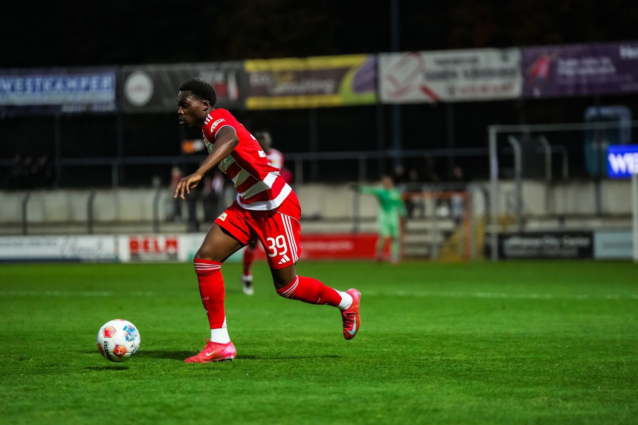 Ogbemudia looked typically assured next to him, rolling a ball out to Janik Haberer in the base of midfield, his shoulders back, head up. Also typical was the way that Oliver Burke showed his blistering pace as he darted up the middle with just a couple of minutes played. He almost got onto the end of a Haberer long ball soon afterwards, but the Regionalliga side would be careful not to let him get the jump on them too often again.