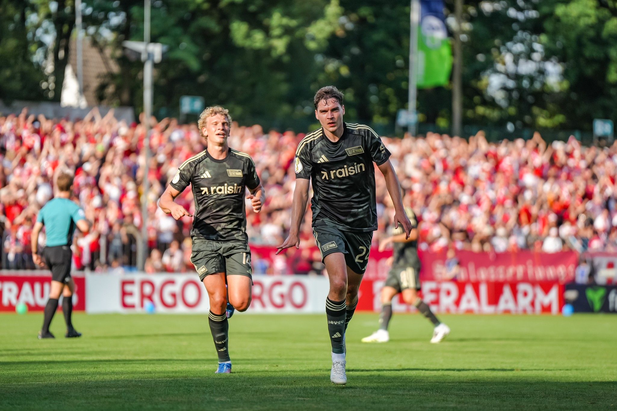 1. FC Union Berlin's men's team secured safe entry into the second round of the DFB Pokal on Friday evening with a 5-0 win over FC Gütersloh. Three goals from set pieces in the first half by Robert Skov, Leopold Querfeld, and Rani Khedira were added to by Andrej Ilic and Wooyeong Jeong after the break.