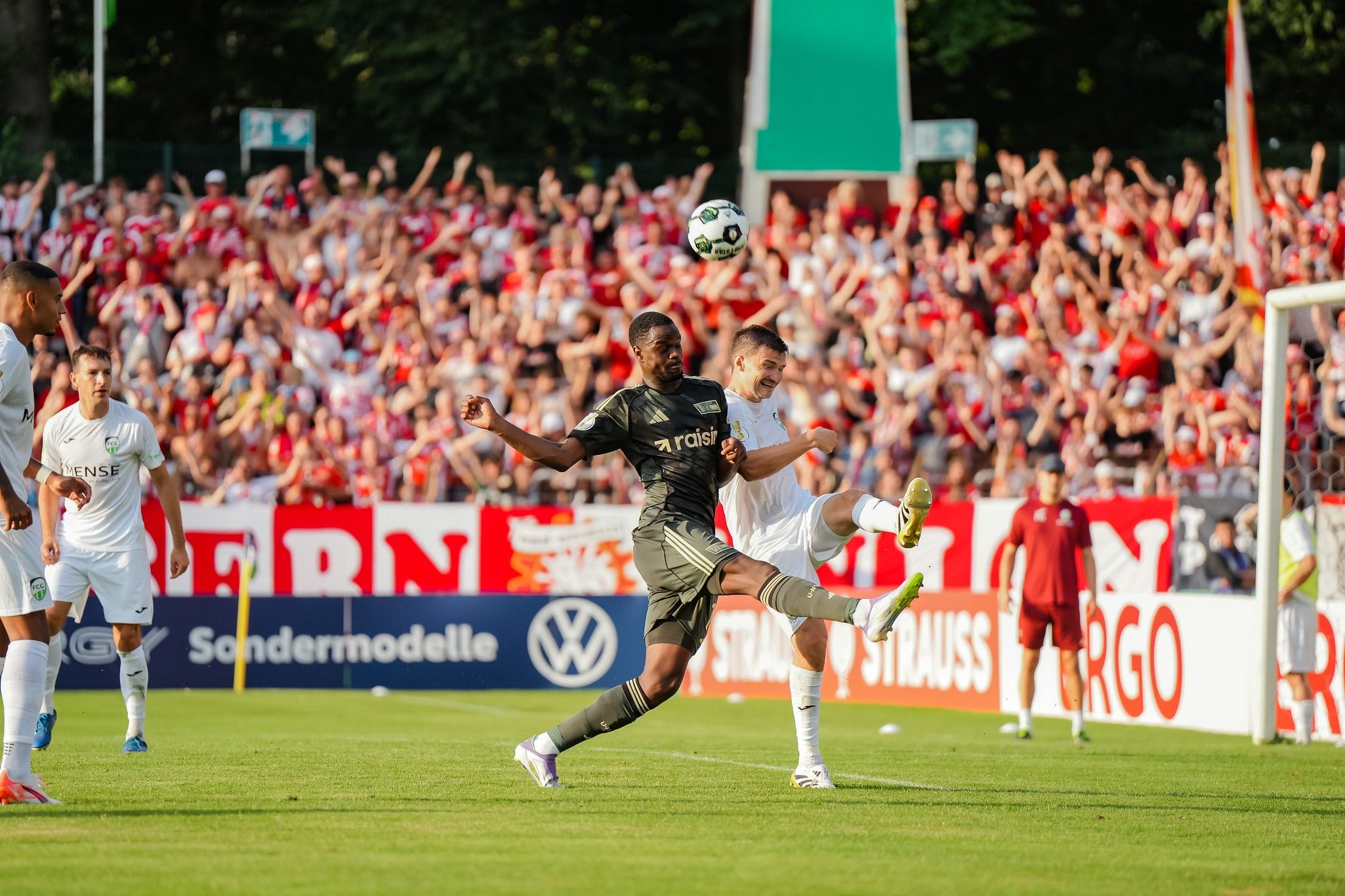 Gütersloh were fighting for every ball, and when Trimmel tried to launch a ball towards their box, packed to the rafters, it was repelled with ease, drawing another roar from the home support who revelled in every single challenge.