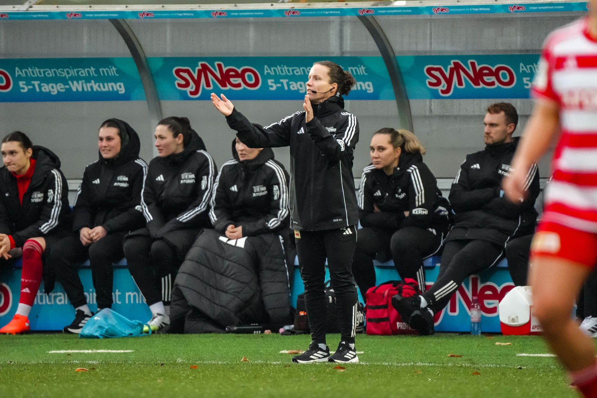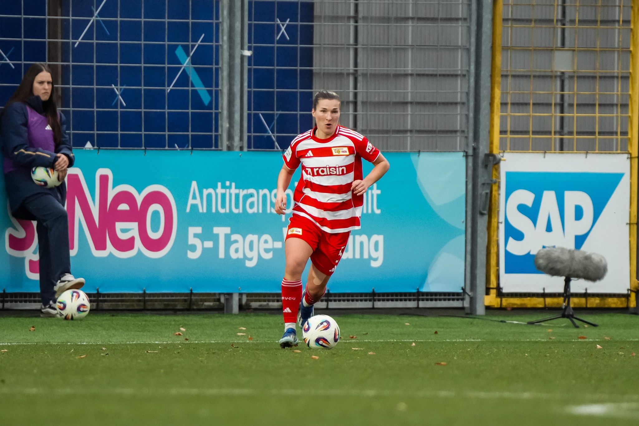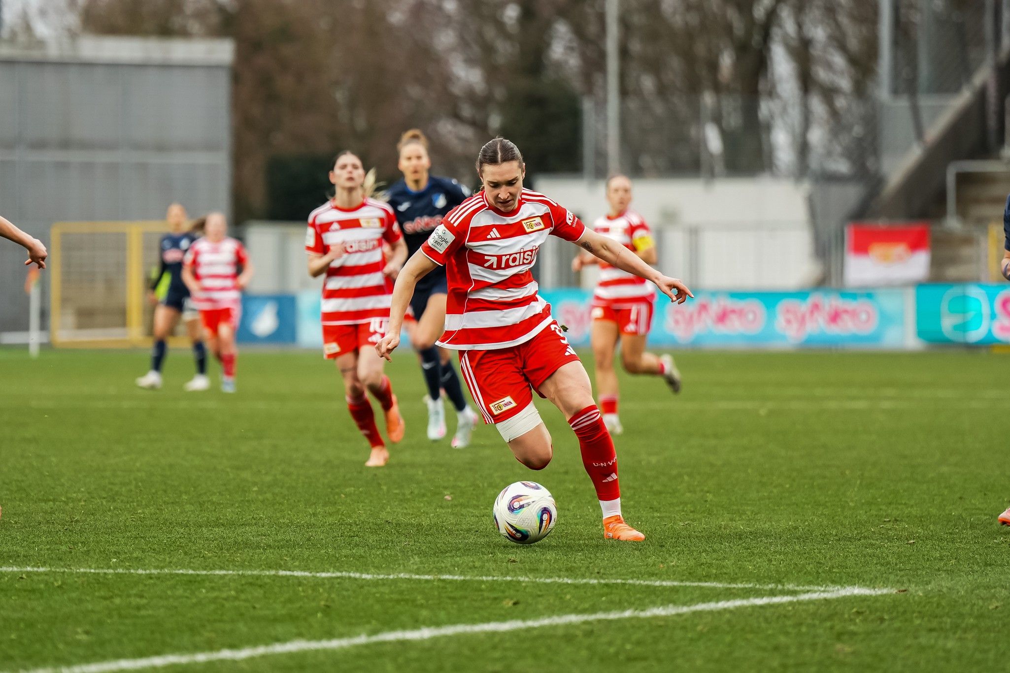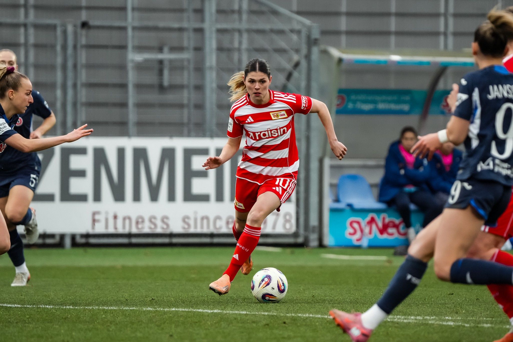 The starting XI: Ailien Poese made one change from the side that drew with HSV, back before the winter break. In goal was Nadine Böhi, behind the back three of Katja Orschmann - in for Marina Georgieva - Samantha Steuerwald and Judith Steinert. Anna Weiß and Dina Orschmann were wingbacks, left and right. Jenny Hipp anchored the midfield three, just behind captain Lisa Heiseler and Antonia Halverkamps, while Eileen Campbell and Sophie Weidauer continued their partnership upfront.