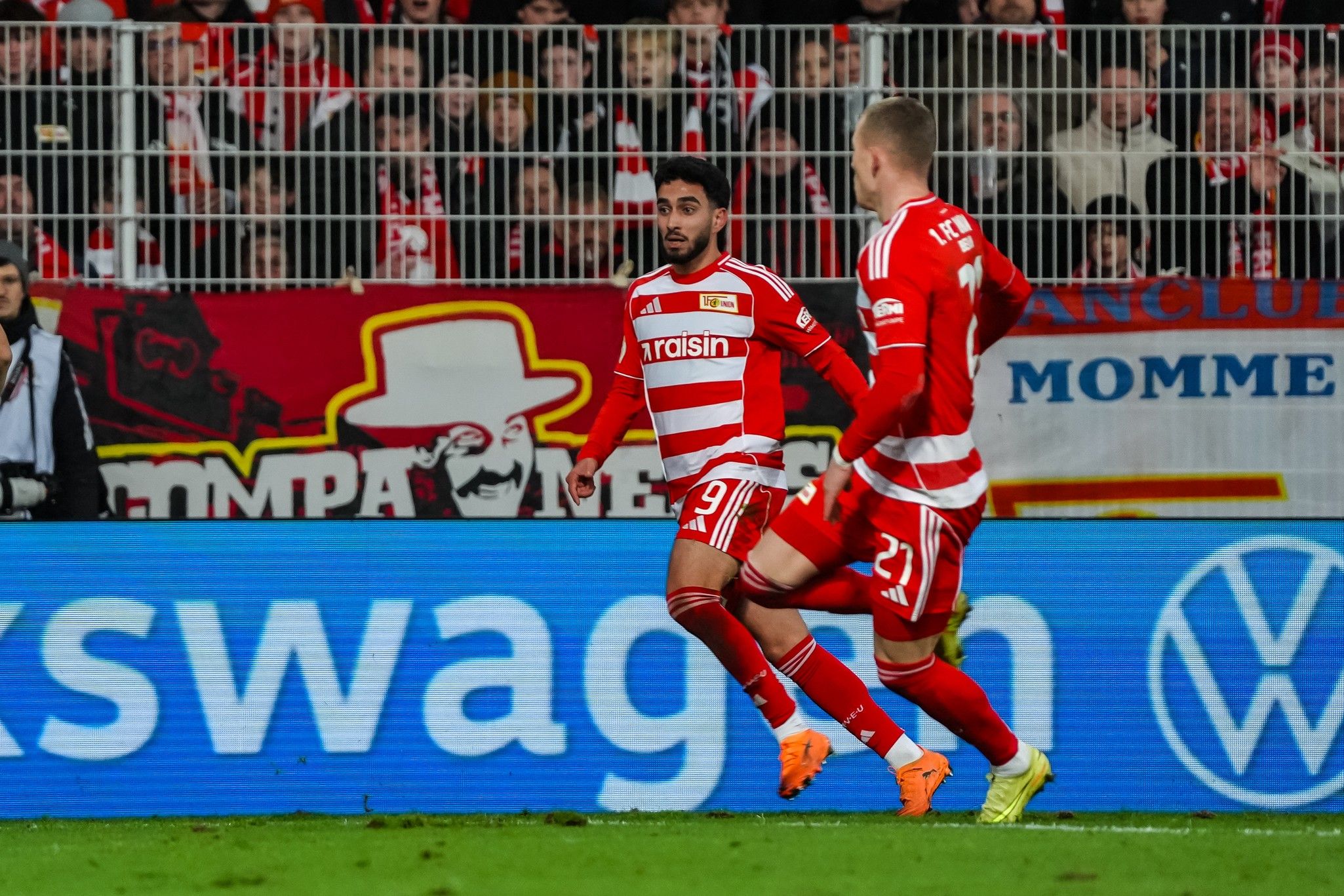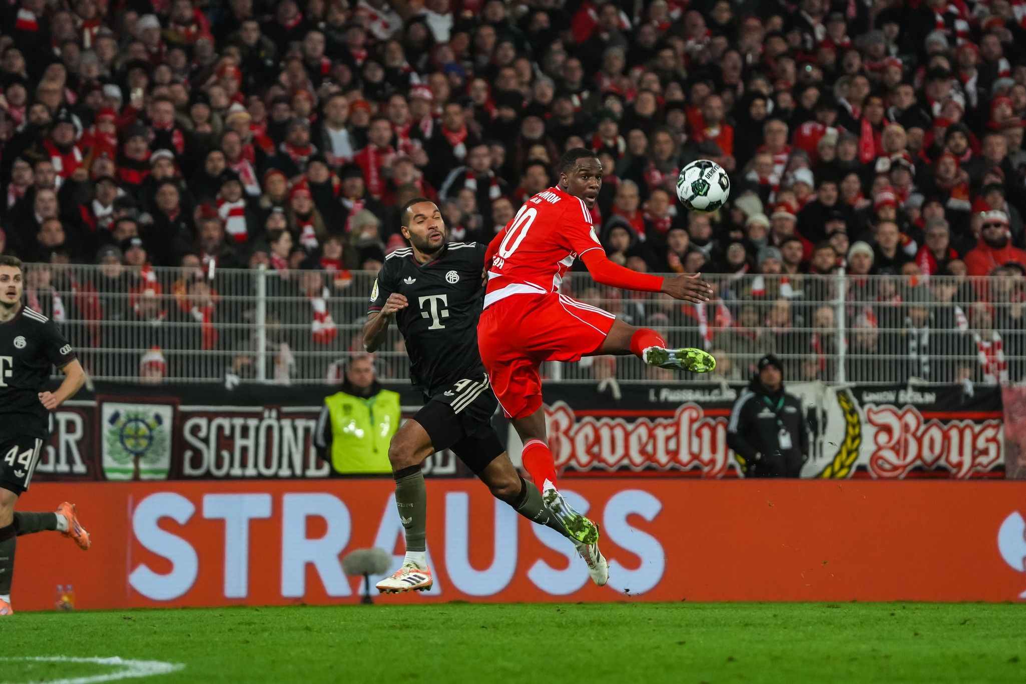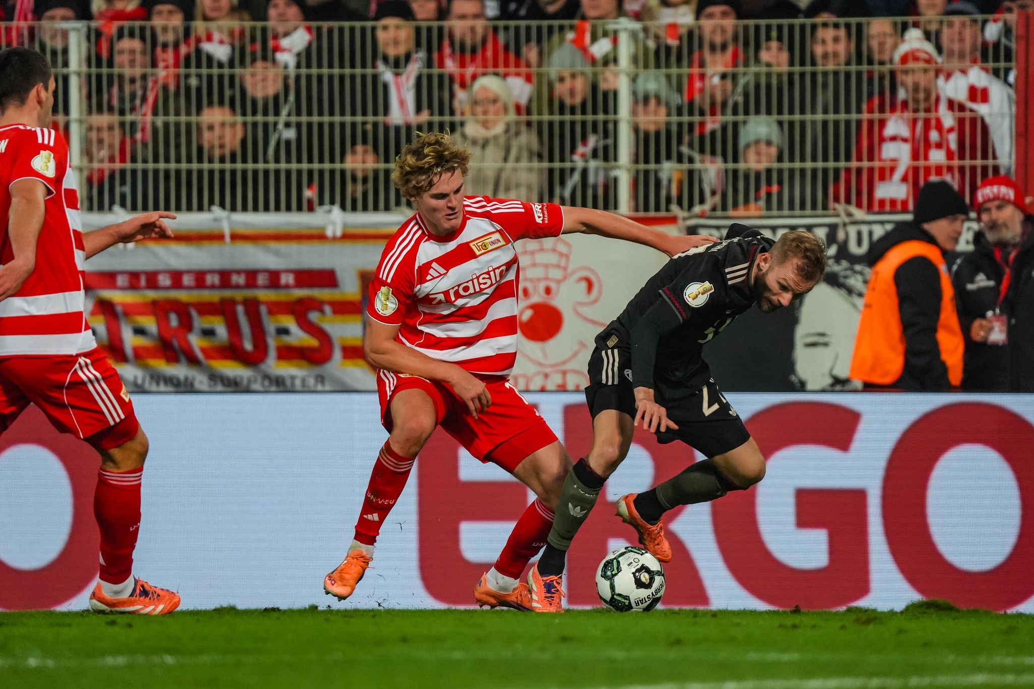 With the wall of noise, and a spectacular choreo – timed in three parts to perfection, red, yellow and white thirds of the Waldseite reflecting the F-C-U chant - now at their backs, Union countered; Khedira, Rothe and Ansah going toe-to-toe with Kimmich, Dayot Upamecano and Josip Stanisic near Bayern’s right-hand corner flag.